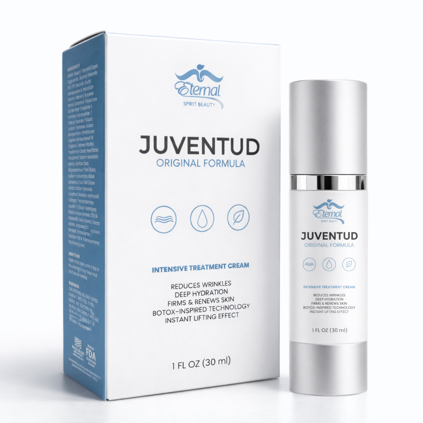 Intensive anti-aging treatment with Swiss ingredients. Juventud may help redefine the curves of your face and repair its surface, reducing the appearance of fine lines and wrinkles in minutes. Results may vary.